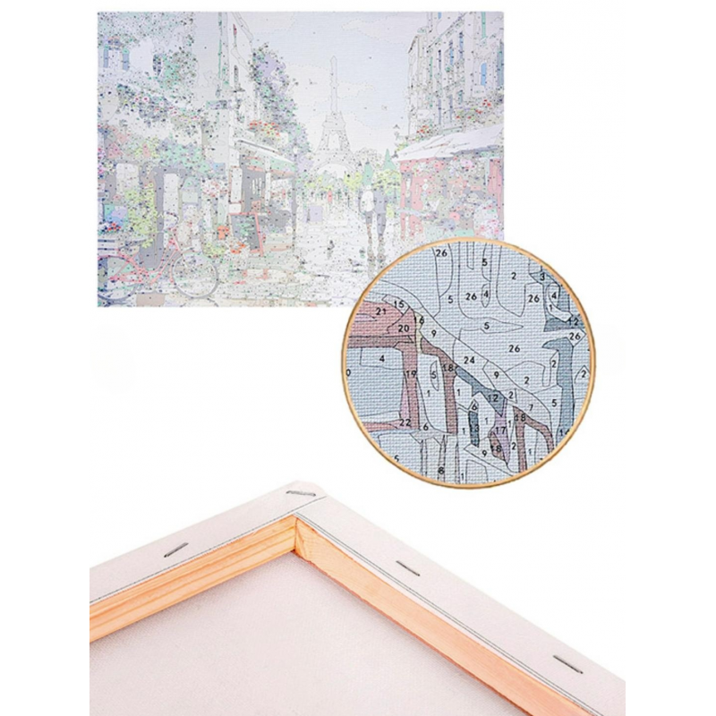 В набор входит: 1) холст на деревянном подрамнике с нанесенной пронумерованной схемой будущей картины,